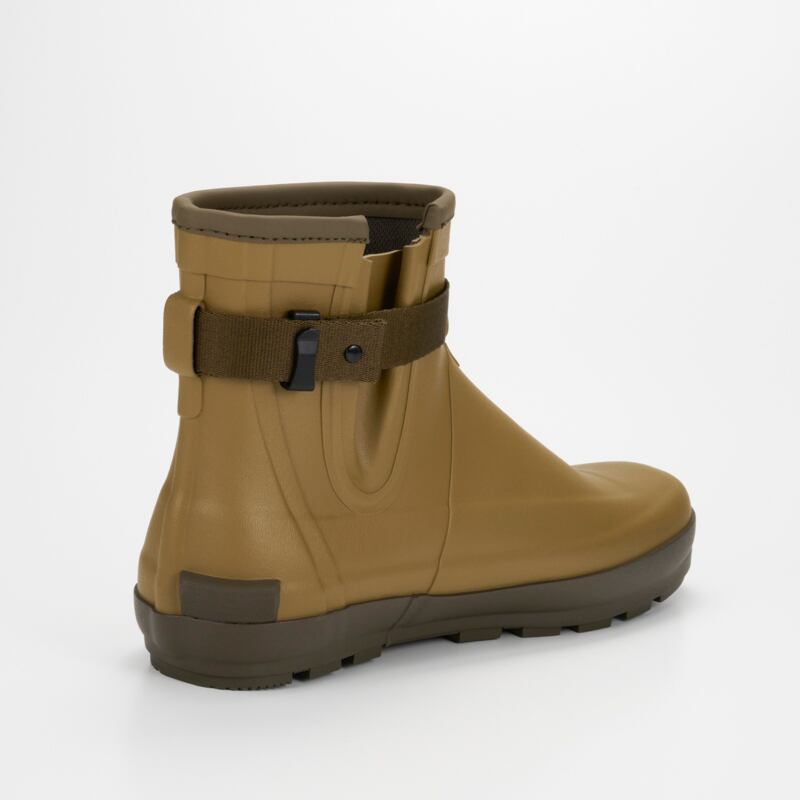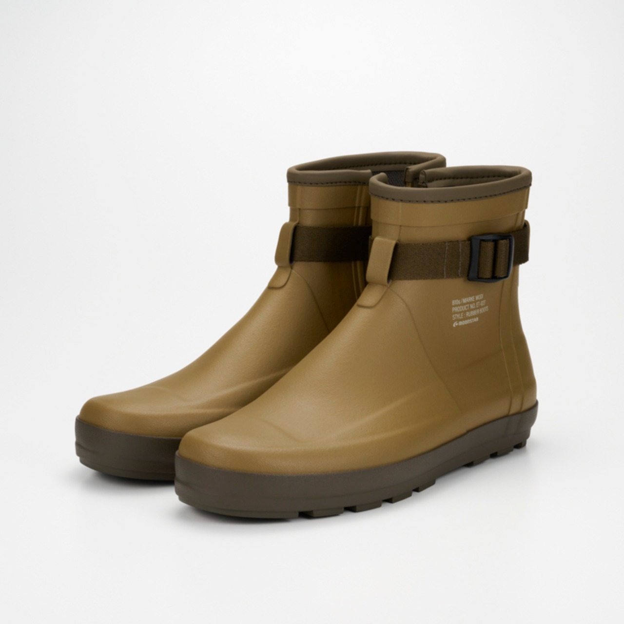 多用途の作業用ゴム長靴をデイリーユースに。バックル仕様にすることで着脱の容易さは保ちつつ、フィット性を高めるシルエットに。履口にパイピングを施し足当たりを軽減した仕様に改良。底面には防滑性を考慮し設計したサクション(吸盤)ソールを採用。ソリッドな印象のワークブーツタイプ。