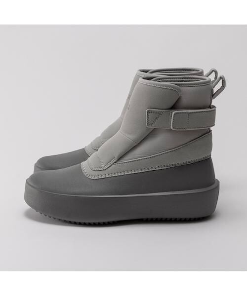 南極観測隊をルーツに持つウインターシューズの製造のノウハウをデイリーユースに。着脱が簡単なアッパー構造と、軽量で防水性のある立体成型EVAのソールを組み合わせた仕様。靴底に氷上で優れた防滑性を発揮するガラス繊維配合ラバーを搭載したミニマルなブーツタイプ。